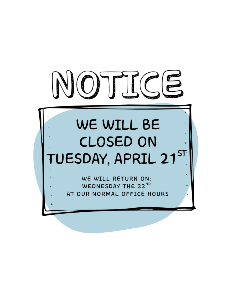 Posted on April 17, 2026, Edited April 17, 2026 by clerk Out of Office The office will be closed on Tuesday, April 21st. We will return on Wednesday, April 22nd.